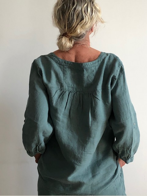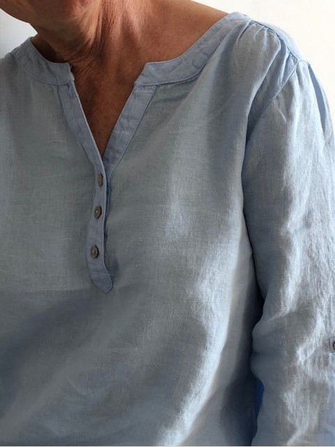 Forme du col : légèrement en V prolongé par 3 boutons pour élargir le décolleté si vous le souhaitez