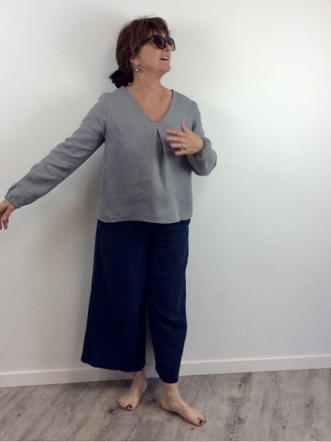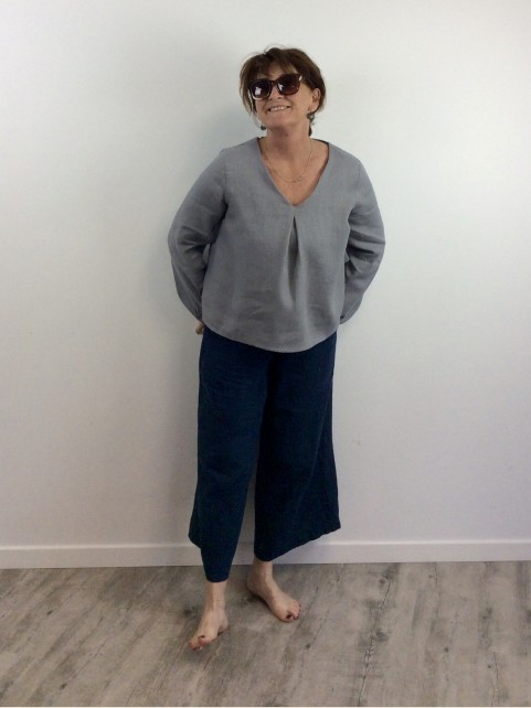 La blouse Emma peut se porter avec un pantalon décontracté ou votre jupe préférée.