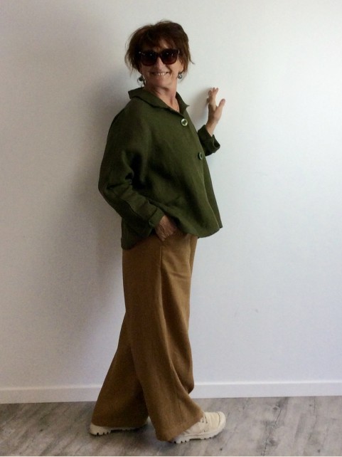 Il vous faut 1,50 m de lin, 80 cm d'élastique de 4 cm de largeur, 2 x 21 cm d'élastique de 3 cm de large et 1 fermeture à glissière séparable de 55 cm Tailles : XS S M L XL Grille de tailles Les patrons sont simples et faciles à réaliser. Les explications vous guideront jusqu'à la fin Vous pouvez me joindre sur le numéro de portable inscrit...