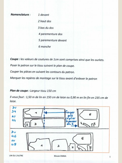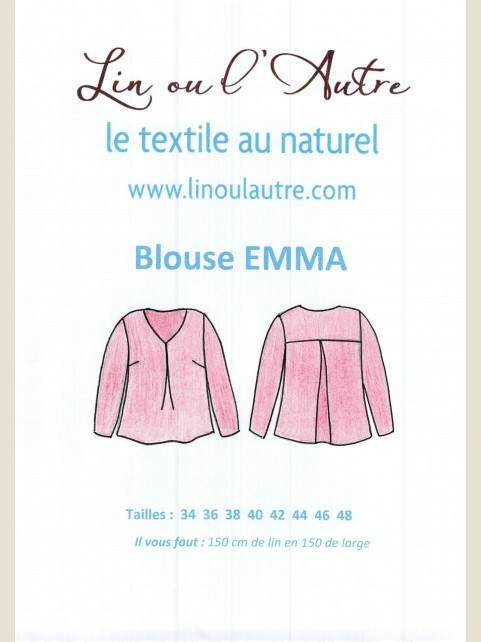 Patron blouse Emma La blouse Emma peut se porter avec un pantalon décontracté ou votre jupe préférée.Avec sa coupe ample, elle convient à toutes les silhouettes Tailles : du 34 au 48 Plan et gamme de montage avec dessins techniques Grille de tailles